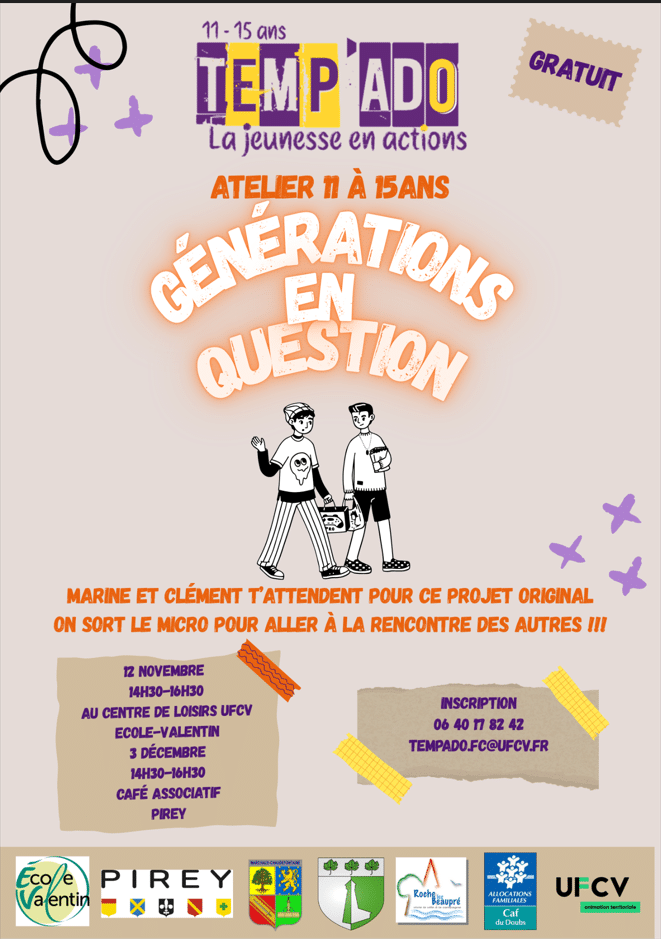 Marine et Clément invitent les jeunes de 11 à 15 ans à participer au projet « Générations en question » : un atelier original pour aller à la rencontre des aînés, poser des questions et créer du lien entre générations.