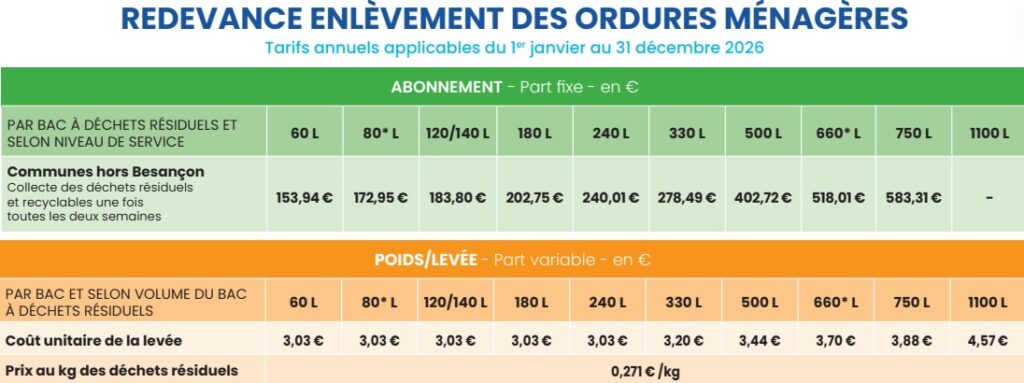 Redevance enlèvement des ordures ménagères - Tarifs 2026